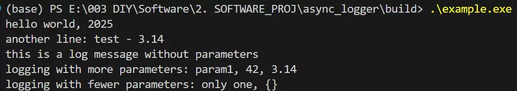 这是一个轻量级异步日志器(async logger)。目标是用现代 C++(线程、互斥、条件变量)实现一个线程安全、低阻塞的日志写入方案:生产者将格式化后的日志消息推入队列,后台消费者线程异步写入文件并可选地输出到终端。整体实现包含一个简单的占位符格式化(暂用{},可自行修改)、类型到字符串的通用转换和优雅的后台线程关闭机制。